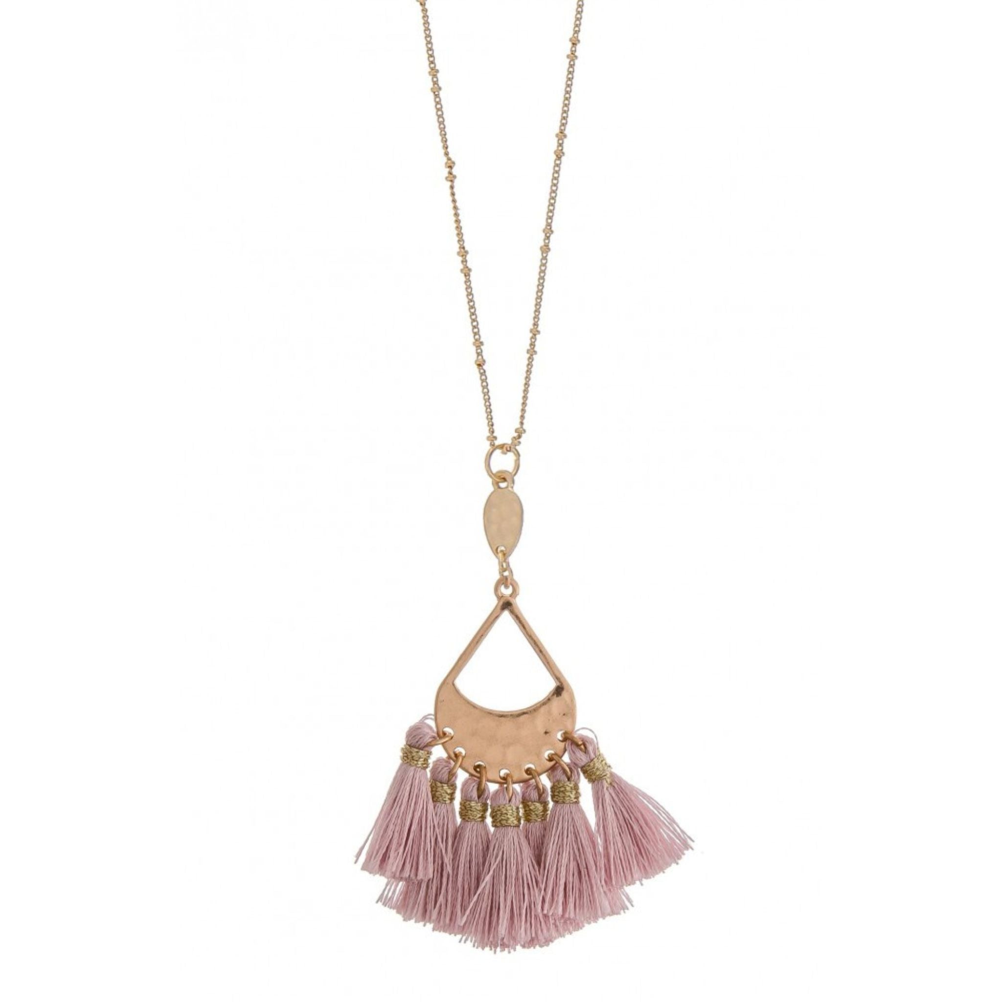 Hammered teardrop fringe tassel pendant necklace.- Pendant approximately 3.5" in length- Approximately 38" in length overall with 3" extender