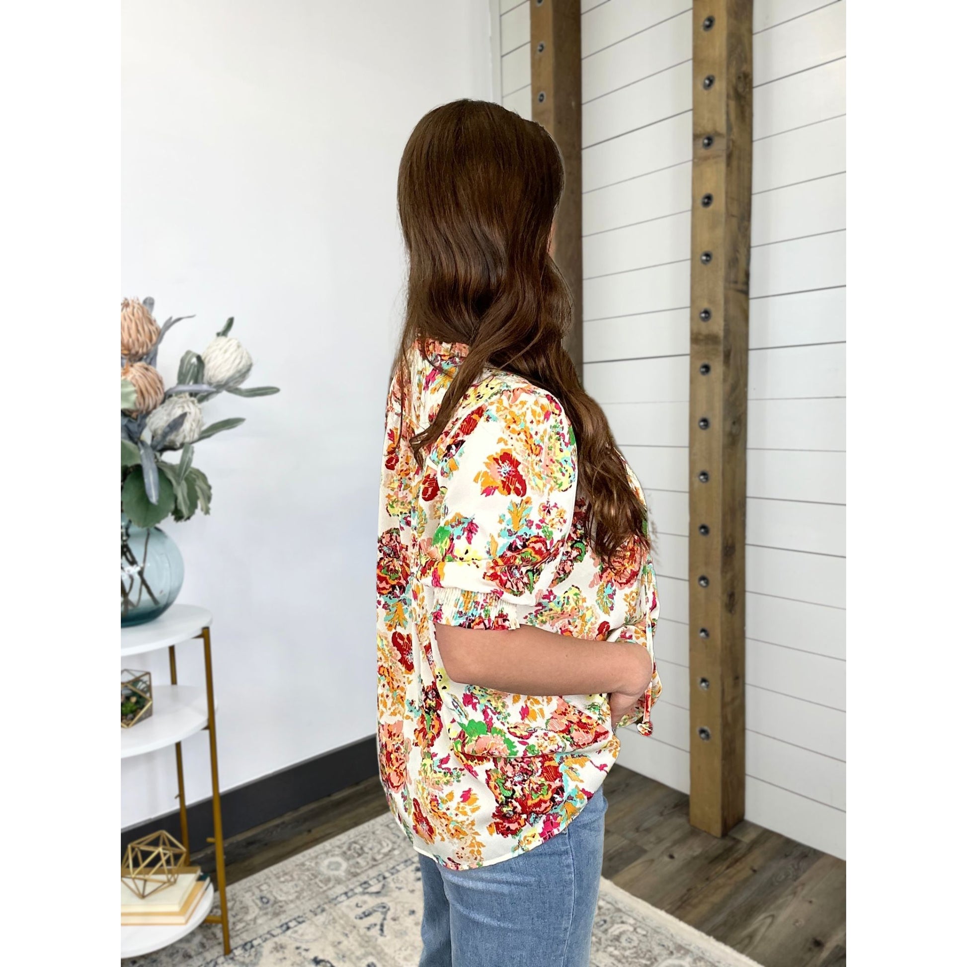 Say hello to your wardrobe's new best friend: the Art In Bloom Blouse. With its vibrant colors and stunning print, this blouse is all about bringing a smile to your day. Perfect for any occasion, it adds a splash of joy to every outfit. Get ready to feel fabulous and confident, no matter where you go!