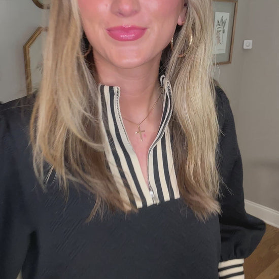 Cozy textured fabric meets a fun half-zip detail for effortless style. Whether you’re dressing it up or keeping it casual, those little touches give your look a playful, put-together vibe you’ll reach for again and again.