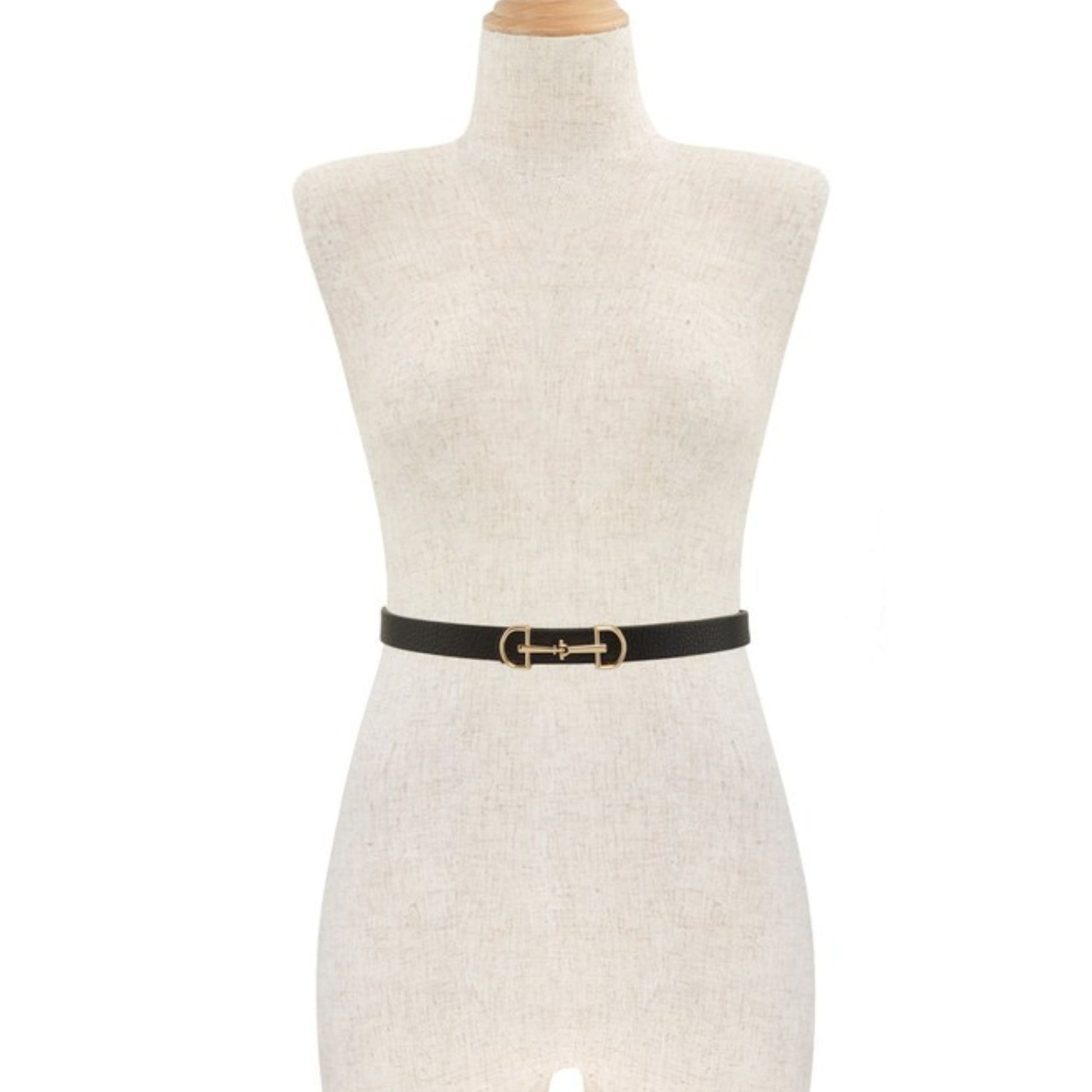 Featuring a sleek, skinny design and a classic horsebit buckle, it adds just the right amount of sophistication to any look. Whether you're dressing up a flowy dress or adding polish to your favorite jeans, this versatile accessory cinches your waist in style and flatters every silhouette. Effortlessly chic—just the way we like it!