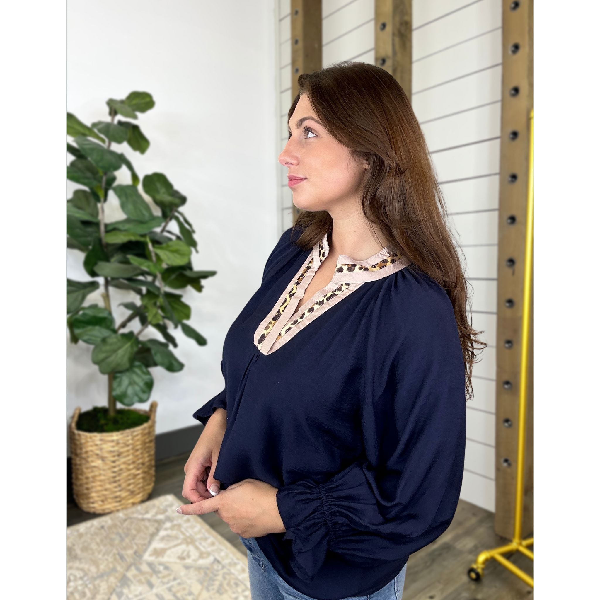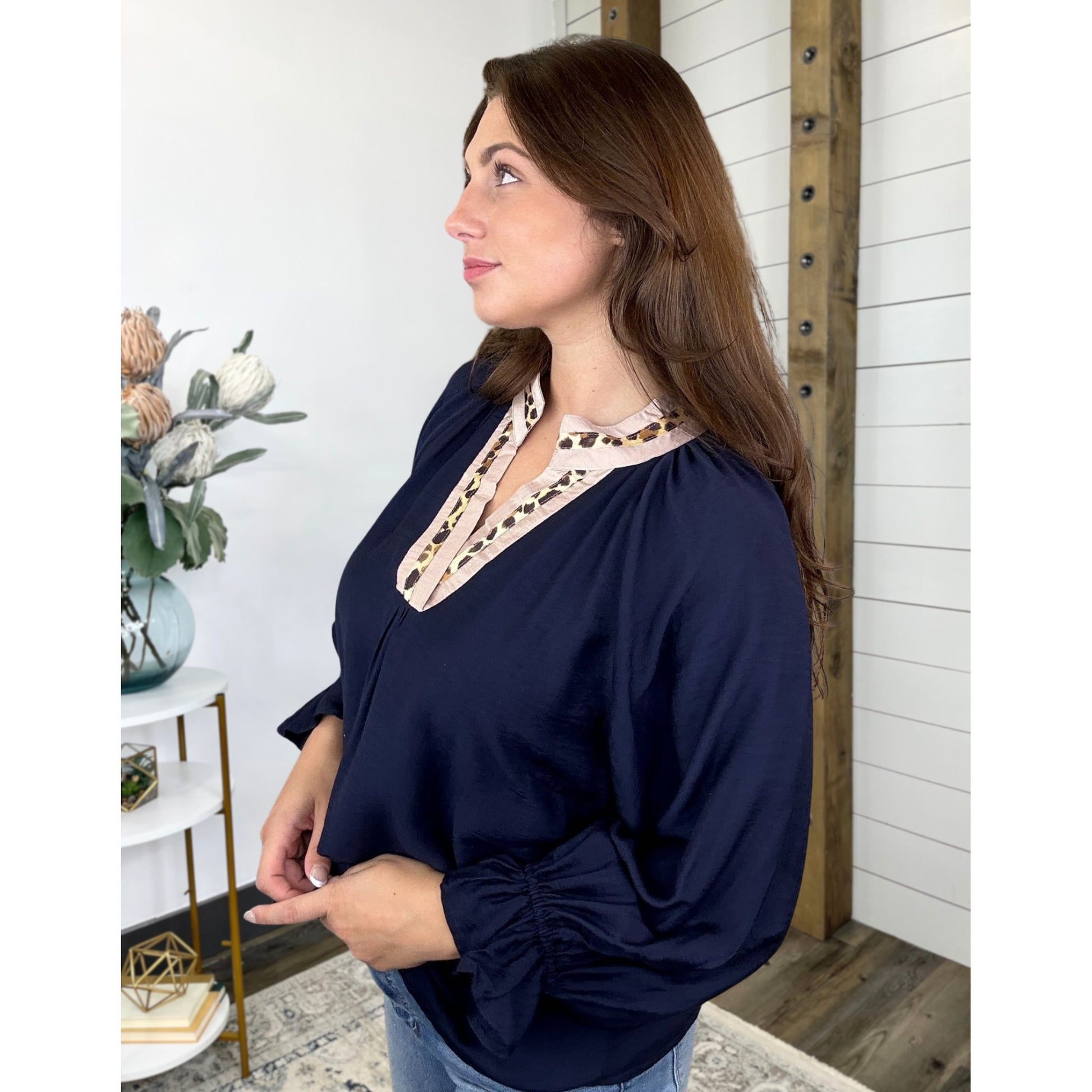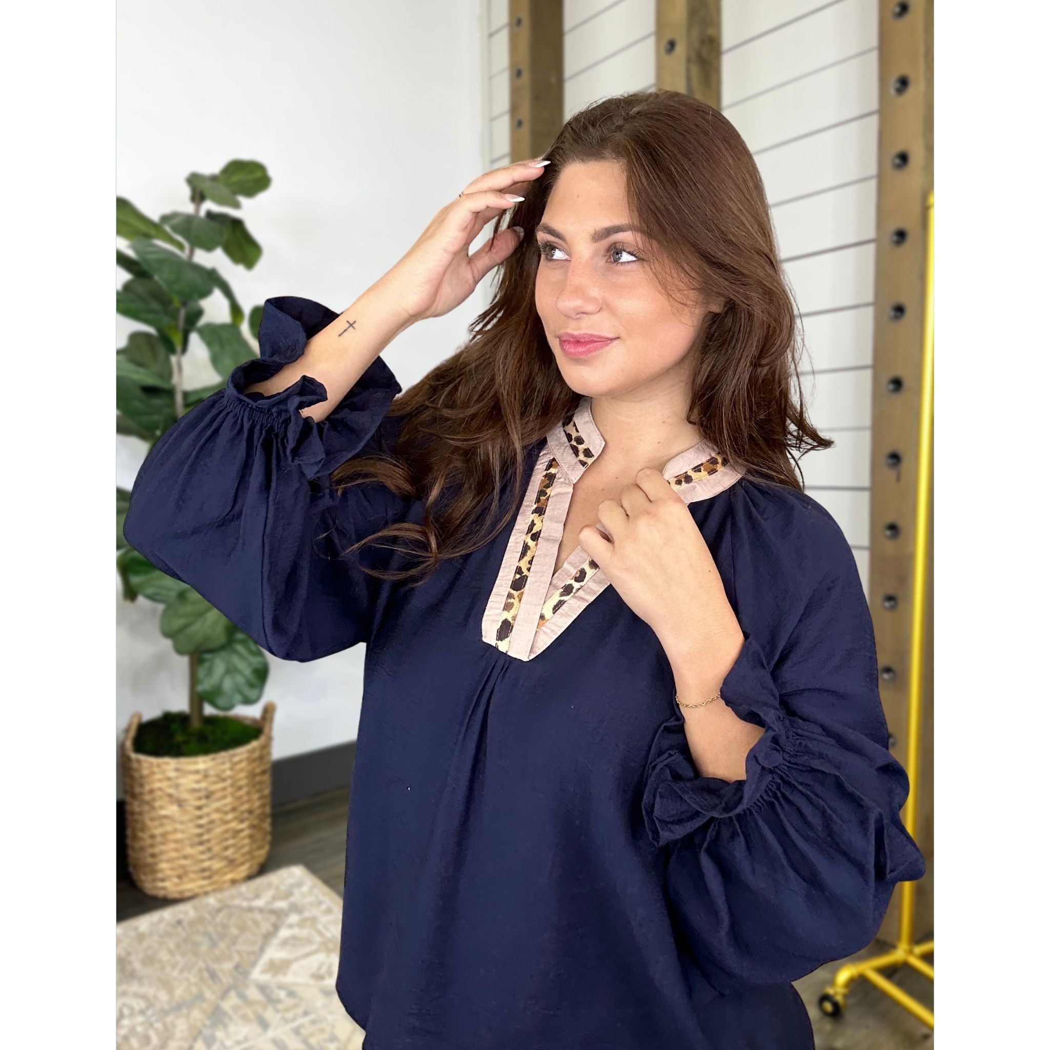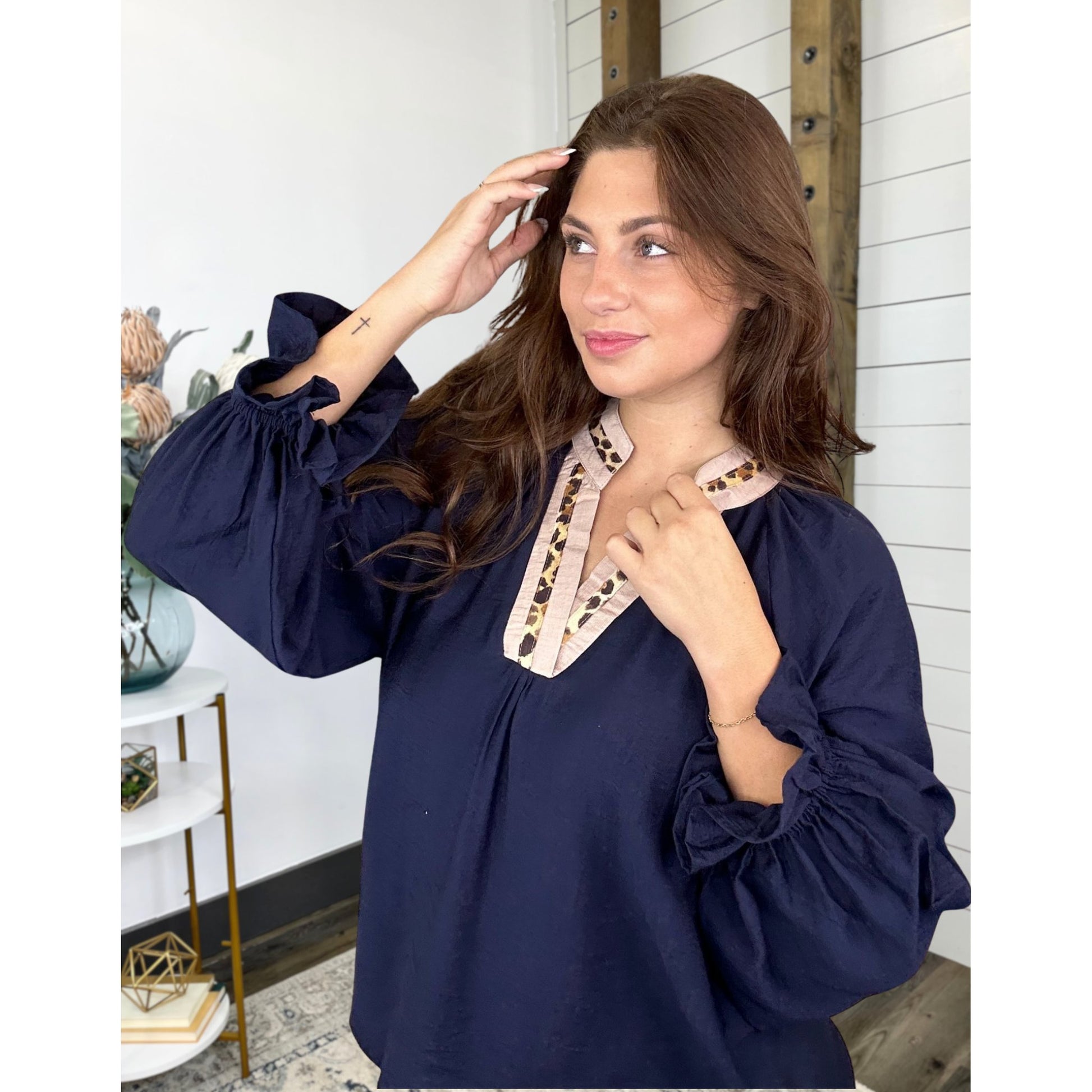 Embrace the night with the Hint Of Wild Top in a stunning midnight hue! The playful leopard trim adds just the right touch of intrigue, while the easy, flattering fit makes it a go-to for looking chic without even trying. Perfect for turning heads and feeling fabulous wherever you go! 🖤🐆