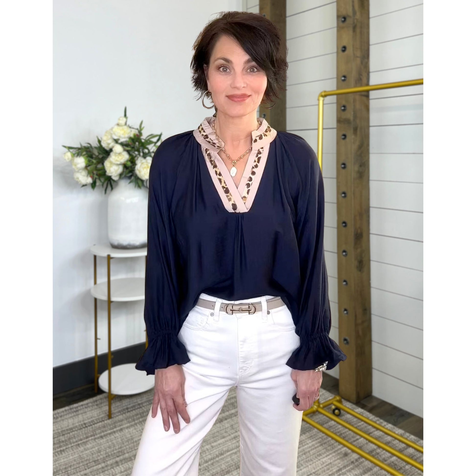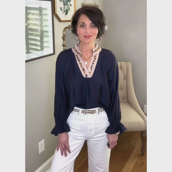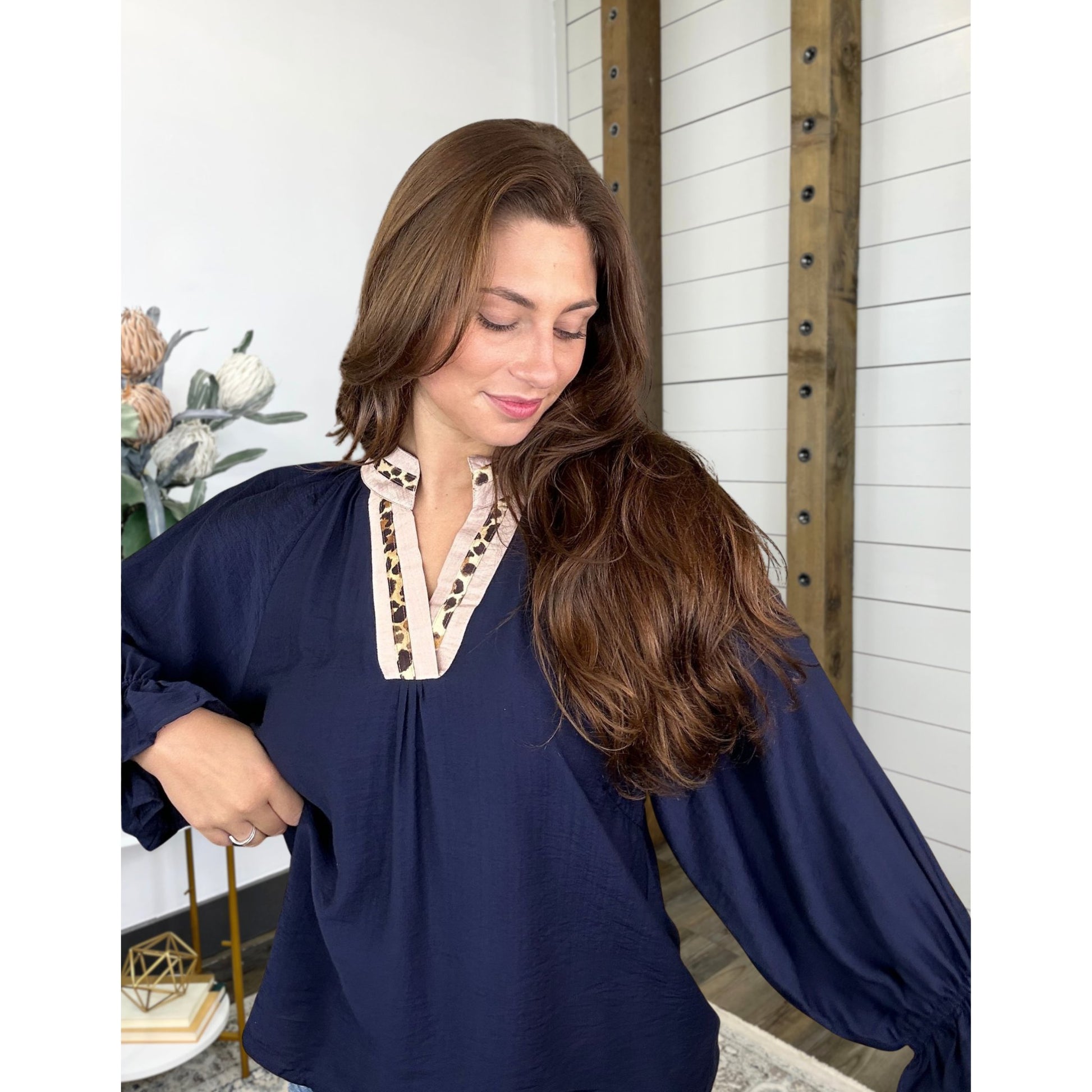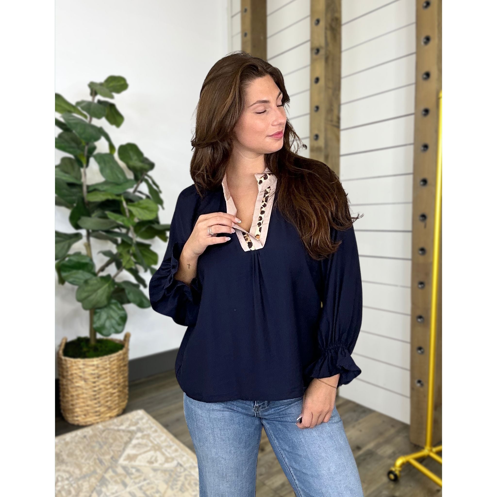 Embrace the night with the Hint Of Wild Top in a stunning midnight hue! The playful leopard trim adds just the right touch of intrigue, while the easy, flattering fit makes it a go-to for looking chic without even trying. Perfect for turning heads and feeling fabulous wherever you go! 🖤🐆