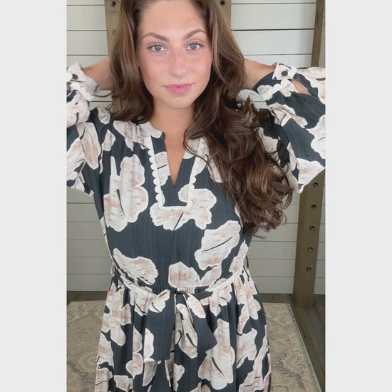 Embrace the magic of moonlit nights in this effortlessly playful maxi. The bold floral print and flattering tiered fit give it that perfect twirl-worthy bounce—whether you're dancing under the stars or just soaking up the vibes. Light, breezy, and full of charm, this beauty is made for turning heads and feeling fabulous.