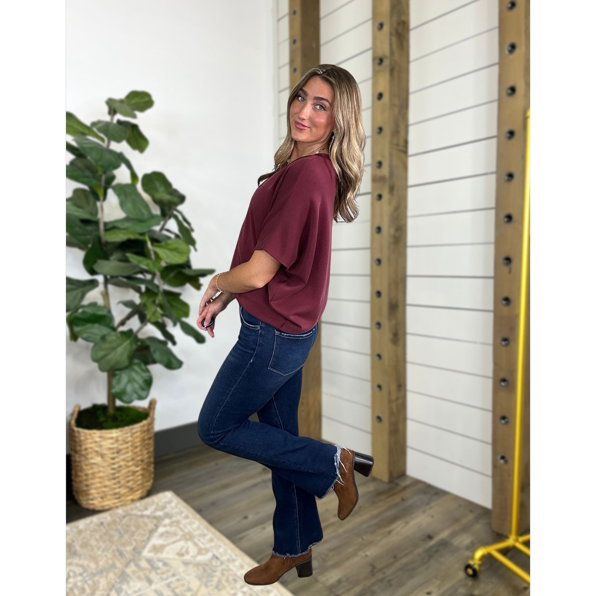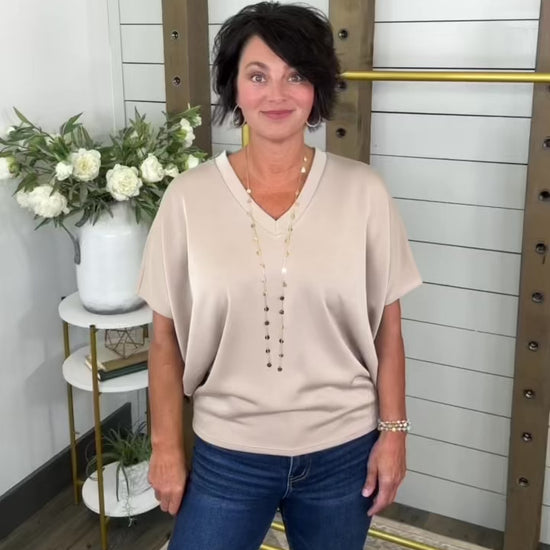 Short Dolman Sleeve V Neck Luxe Scuba Top
